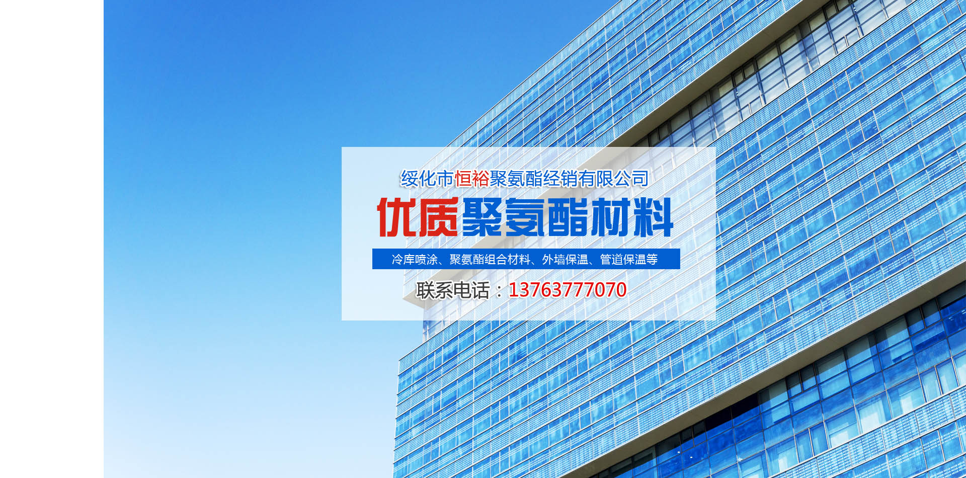 綏化市恒裕聚氨酯經(jīng)銷有限公司是一家集聚氨酯材料 、生產(chǎn) 銷售為 綜合型企業(yè),主要經(jīng)營聚氨酯組合料(黑白料)銷售,另承接冷庫保溫,別墅保溫,外墻保溫 管道保溫等大中小工程 公司擁有30臺進口噴涂設(shè)備,年施工量3000噸。 公司位于綏化市東富工業(yè)園區(qū),本著質(zhì)量為本,誠信至上的原則,精心打造完美工程,優(yōu)質(zhì)的售后服務(wù)竭誠與您合作。